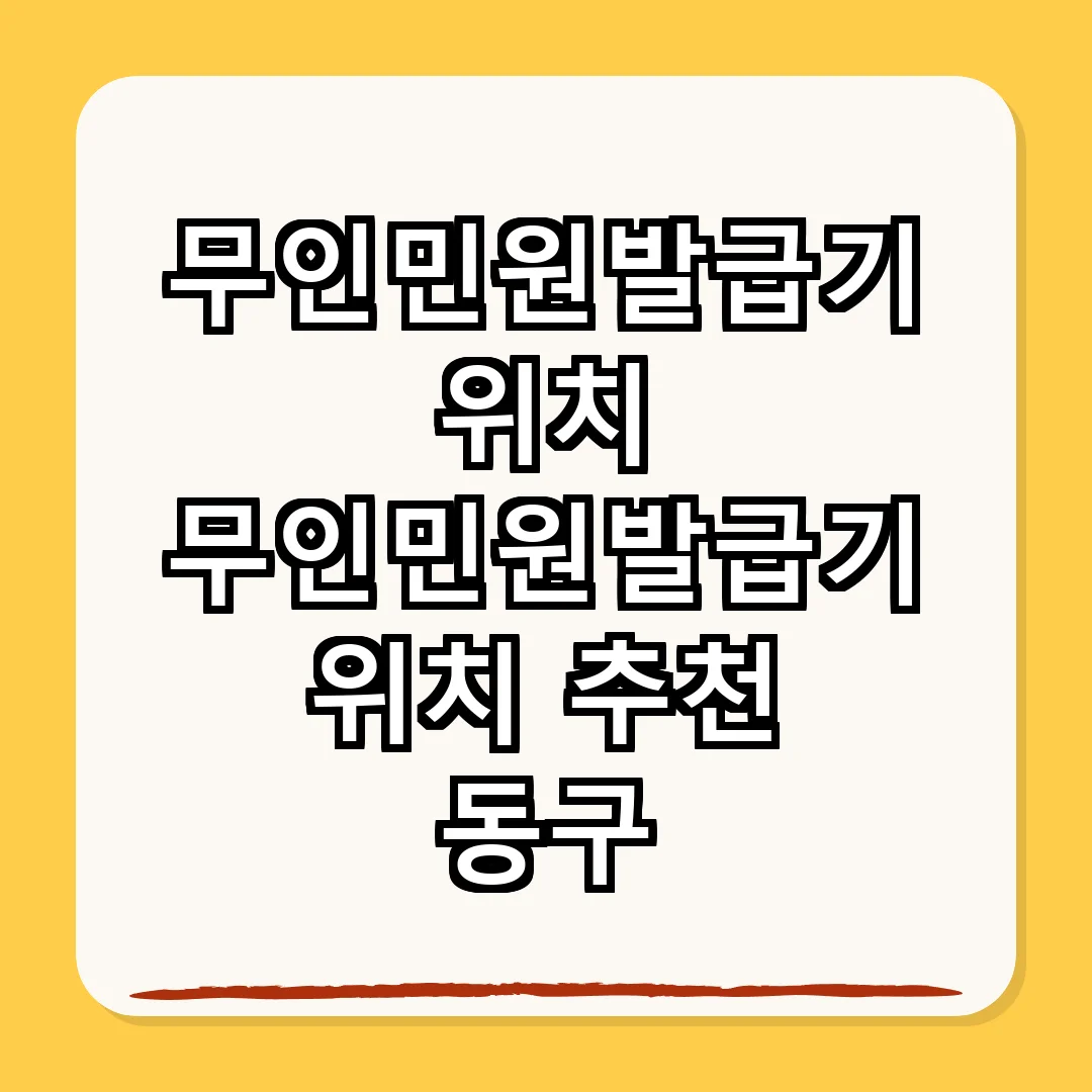 동구 지역 내에는 여러 무인민원발급기가 설치되어 있습니다. 주민센터, 공공 도서관, 대형 마트 등 다양한 장소에서 편리하게 이용할 수 있습니다. 각 장소마다 운영 시간이 다를 수 있으니, 방문 전에 확인하는 것이 좋습니다. 특히, 동구 주민들은 가까운 무인민원발급기를 통해 신속하게 필요한 서류를 발급받을 수 있습니다.