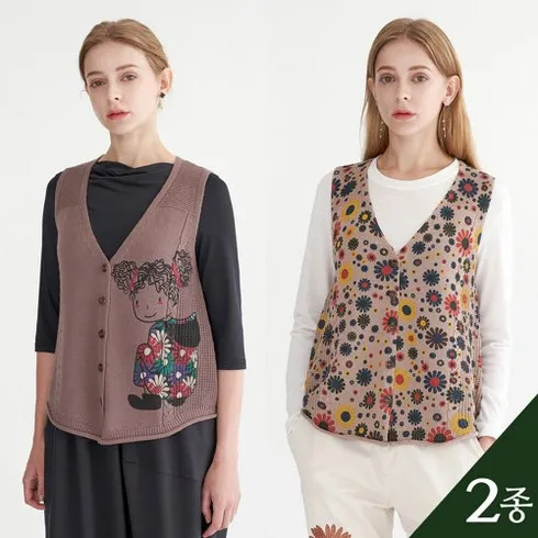 4. 라라쎄 라라쎄 프린트 니트베스트 2종