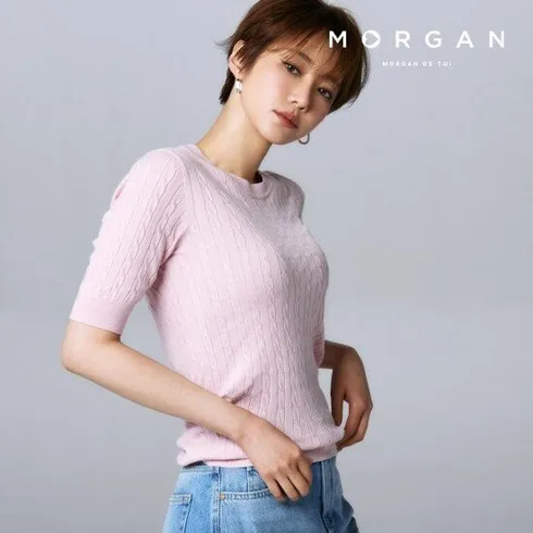 1. [24SS 최신상] MORGAN 뉴 케이블 반팔 니트 4종