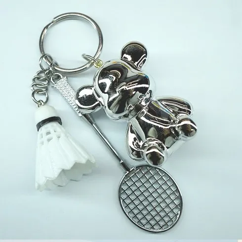 mcuru 키치X베어 배드민턴 열쇠고리 키홀더 가방장식, 실버