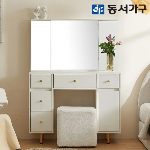 6. 동서가구 홈즈 골드 수납 화장대 수납거울 HGW008, 화이트
